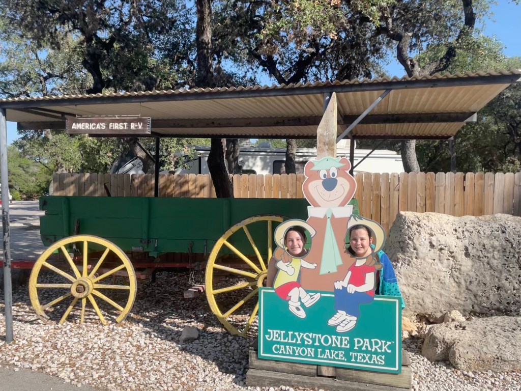 We surprised the girls with a weekend trip to Yogi Bear’s Jellystone Park Camp-Resorts, located in Canyon Lake, Texas. The Resort had spacious sites, full-hookups for the RVs, along with a waterpark, putt-putt, horse-shoes, laser tag, several pools, and walking trails. A bonus perk to the resort is if you don’t own an RV, there are also cabins available to rent! One thing we weren’t aware of were the golf carts that were for rent. Unfortunately, all carts were rented while we were there, but we were able to walk throughout the resort with no issues.